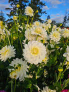 Shilo Jazzman is a standout white dahlia with creamy yellow-green centers, perfect for wedding arrangements. Known for its reliability and beauty, Shilo Jazzman adds a touch of classic elegance to gardens and bouquets.